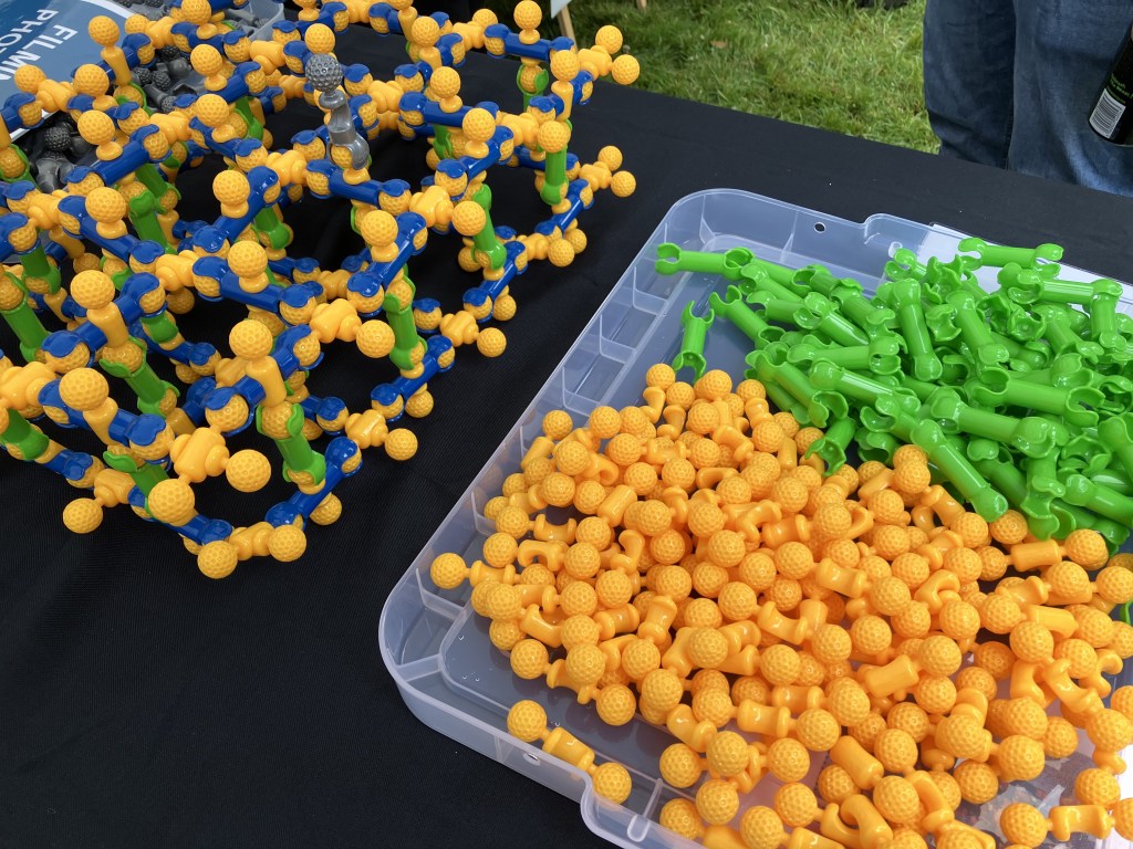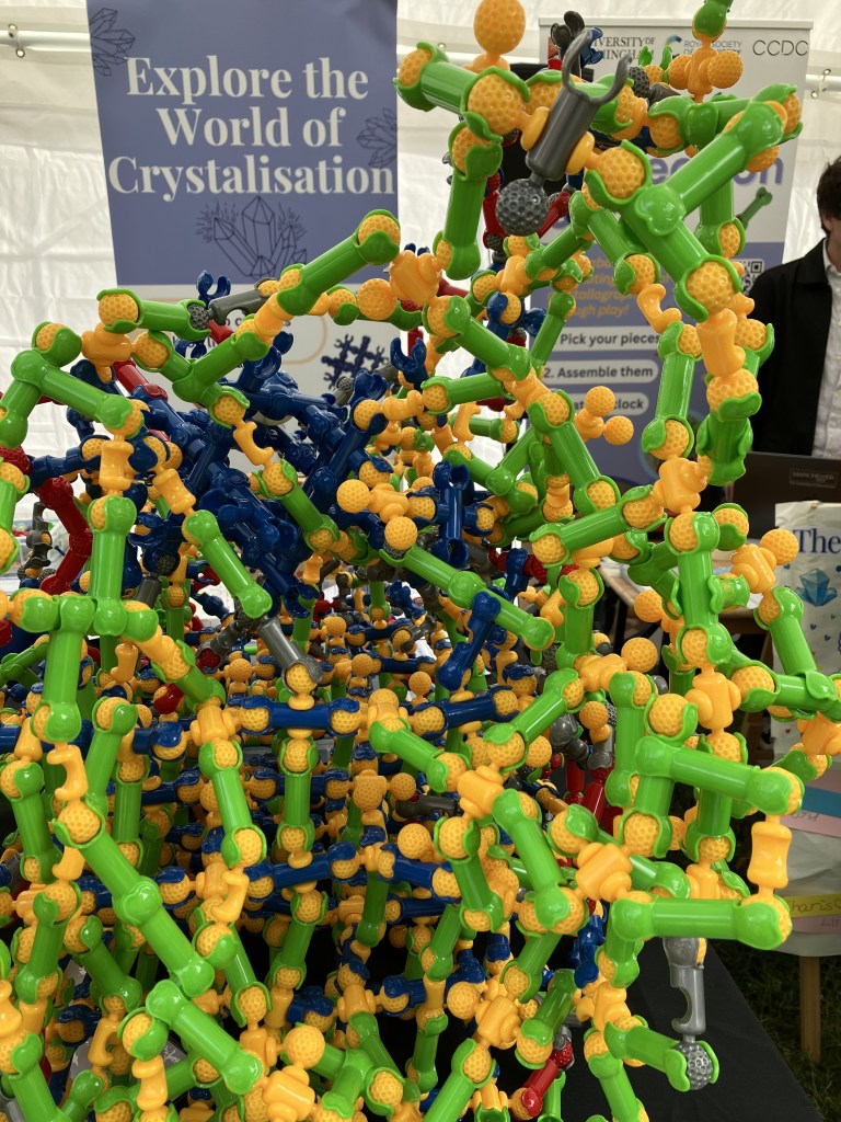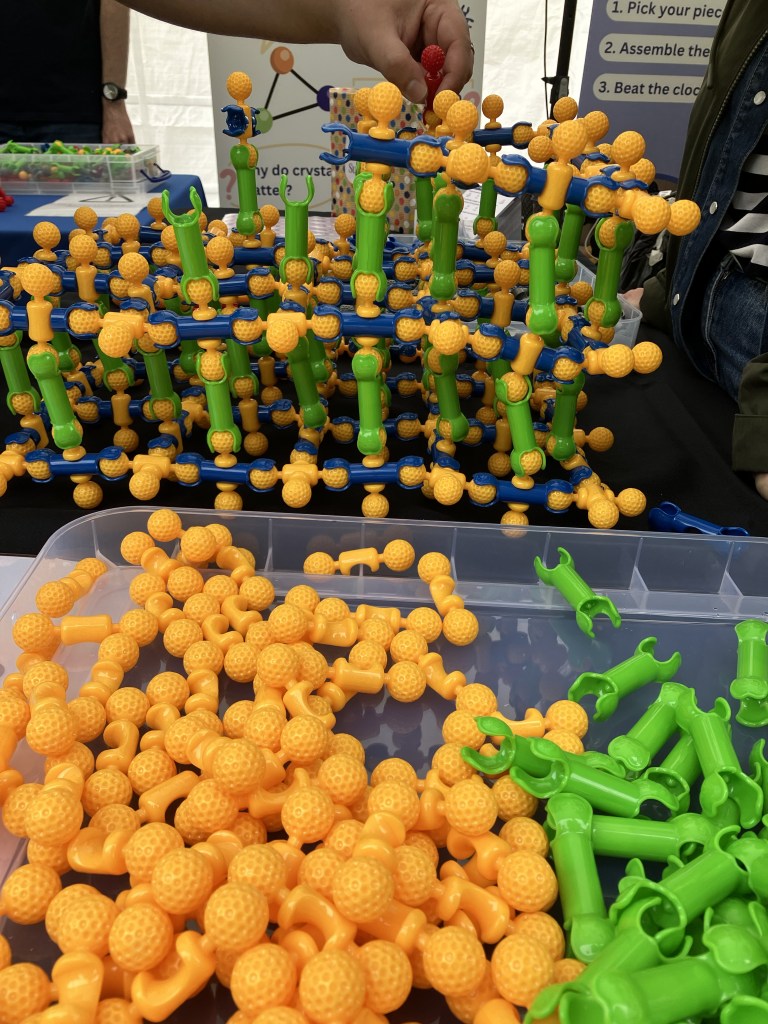 ‘Giant Interactive Crystal Growth’ is a big hands-on activity about crystal growth using Zoob construction toys. Lots of people can get involved at once and there are plenty of talking points about crystals and crystal growth.