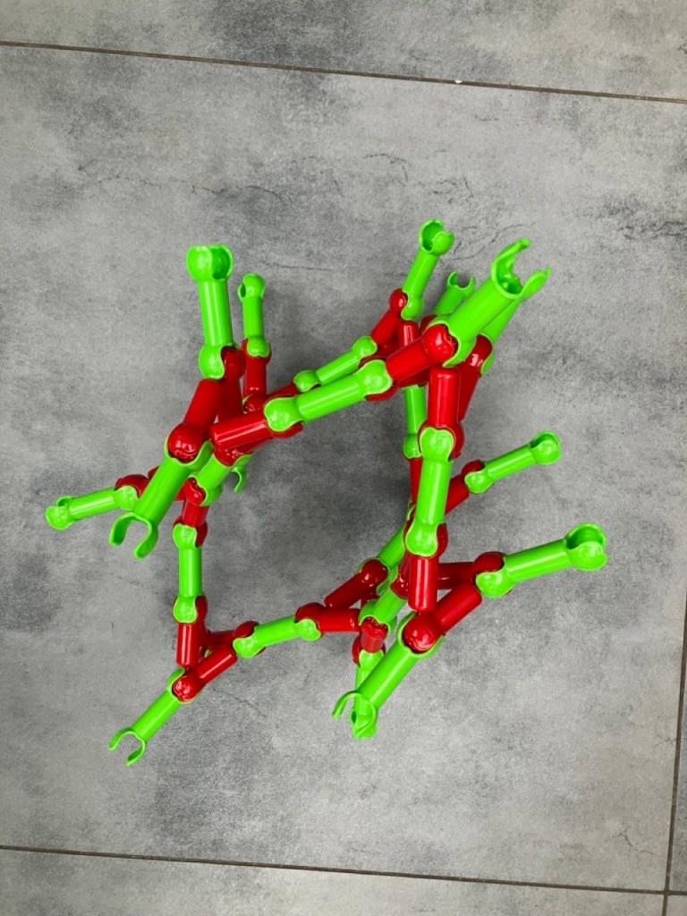 You will need a set of construction/connector toys, such as Lego, Duplo, k’nex, Octons, Sticklebricks etc. For our events we use Zoobs, because they have a limited and well defined set of connections that give rise to a diverse range of topologies.
