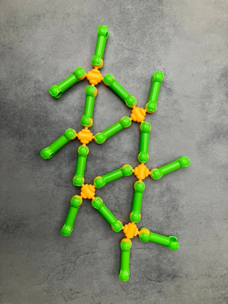This activity uses connector toys to illustrate the concept of self-assembly in the context of molecular crystals, metal-organic frameworks and minerals.